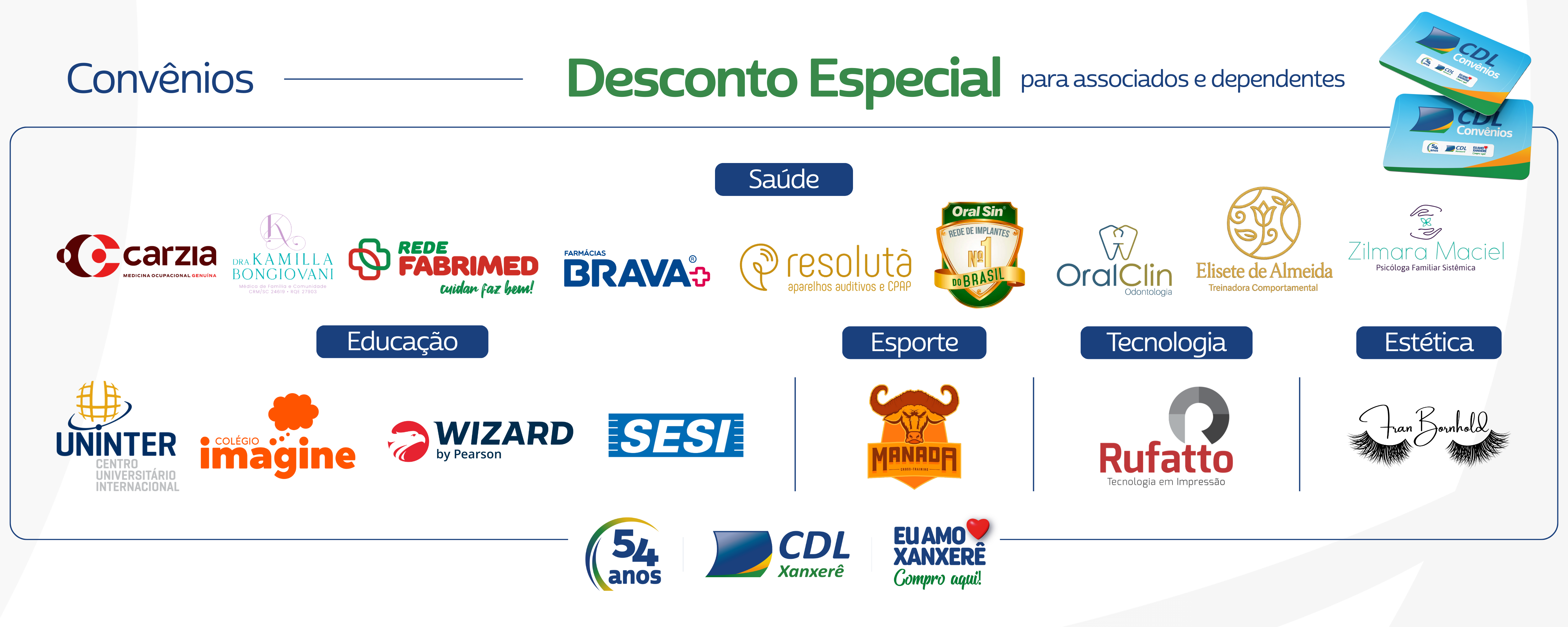 Por meio de parcerias estratégicas, a CDL oferece planos de saúde com preços, condições especiais e benefícios diferenciados aos associados. Descontos de 5% a 40% nos estabelecimentos conveniados no cartão CDL ou via declaração emitida pela CDL, que podem ser utilizados pelos administradores e colaboradores das empresas, bem como dependentes de ambos.