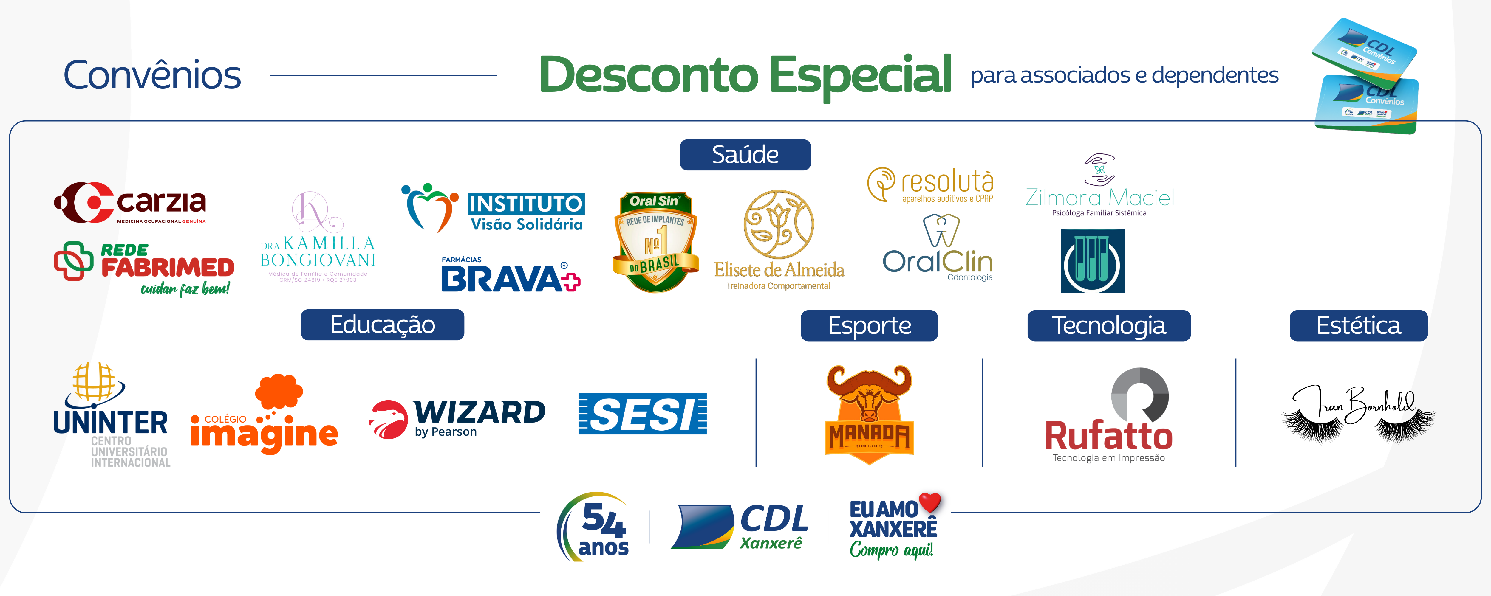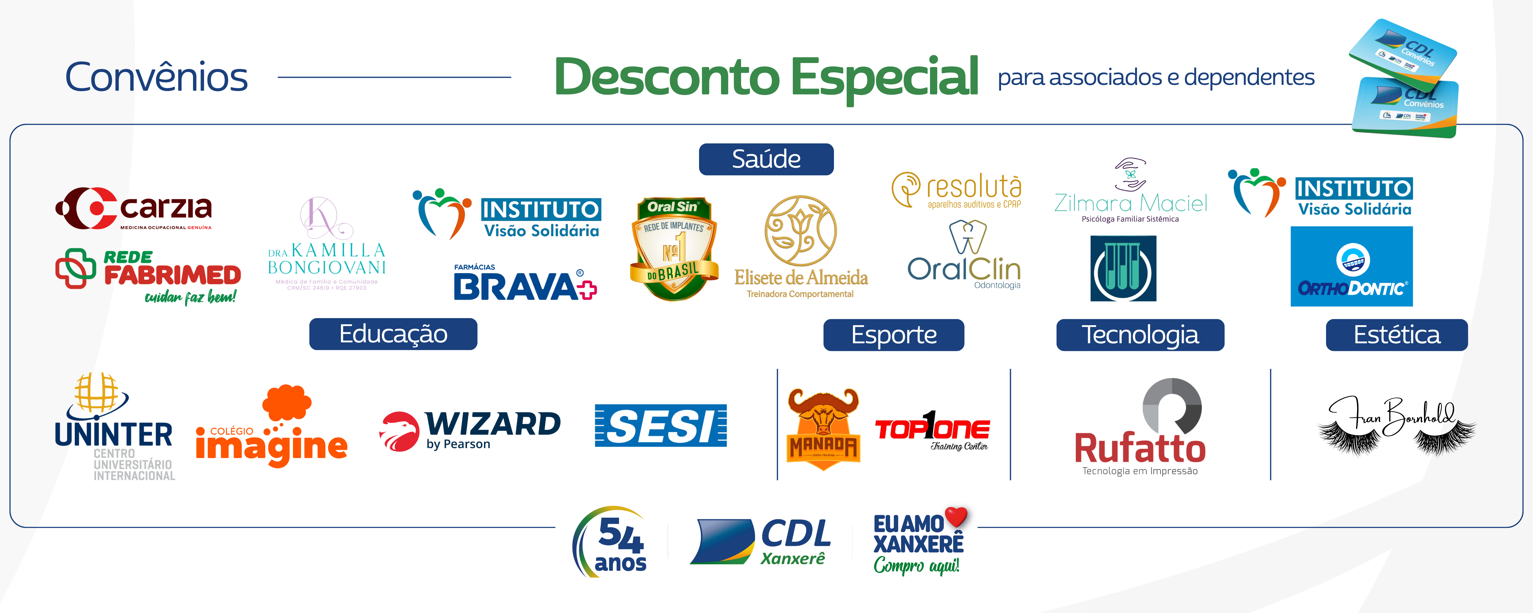 Por meio de parcerias estratégicas, a CDL oferece planos de saúde com preços, condições especiais e benefícios diferenciados aos associados. Descontos de 5% a 40% nos estabelecimentos conveniados no cartão CDL ou via declaração emitida pela CDL, que podem ser utilizados pelos administradores e colaboradores das empresas, bem como dependentes de ambos.